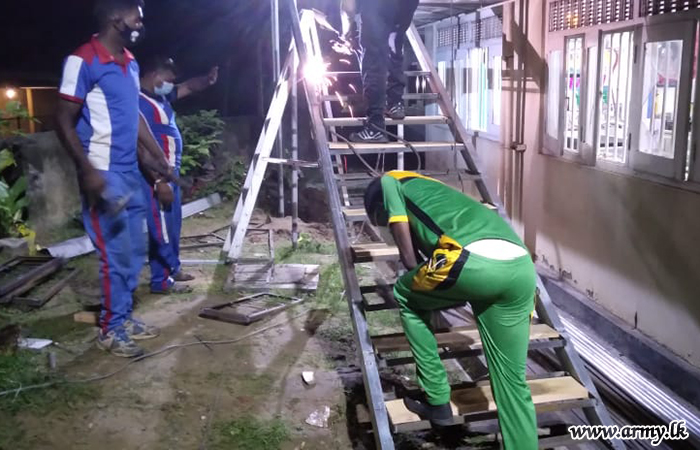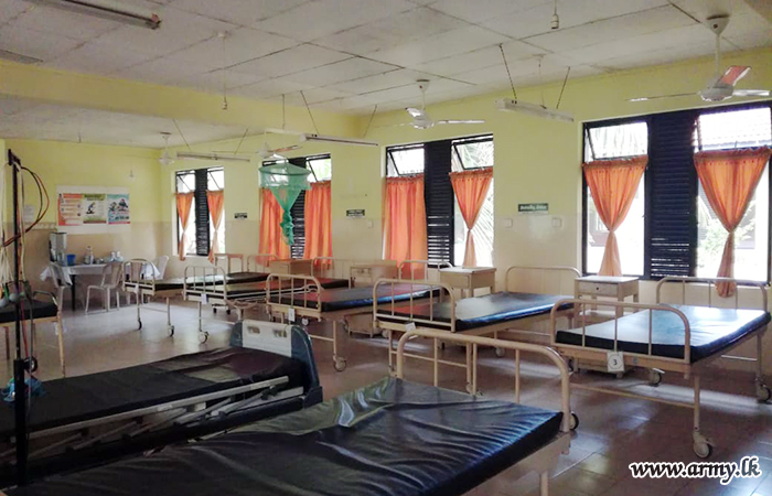 The ICC was made a reality with the support of the Health officials and workers at Tangalle Hospital in coordination with the Commander, Security Forces - Central in order to enable the accommodation of COVID patients in an emergency. Troops completed the project as per guidelines given by health authorities and Senior Officers.