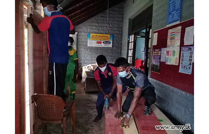 23 Gajaba Regiment (GR) and 3 Sri Lanka National Guard (SLNG) troops under command to the 122 Brigade of the 12 Division under the Security Force HQ – Central gave their helping hand to the Walasmulla Base Hospital authorities to erect a new treatment centre for COVID -19 in the premises in order to enhance the capacity for admission of infectees.