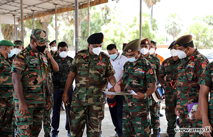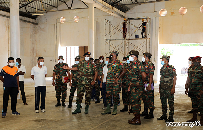 Commander, Security Forces- Jaffna, Major General Priyantha Perera undertook an inspection visit to the Navatkuli Intermediate Care Centre (ICC) under Army improvisation on Wednesday (12) and inquired into its progress in the face of surging numbers of COVID-19 patients in the peninsula.