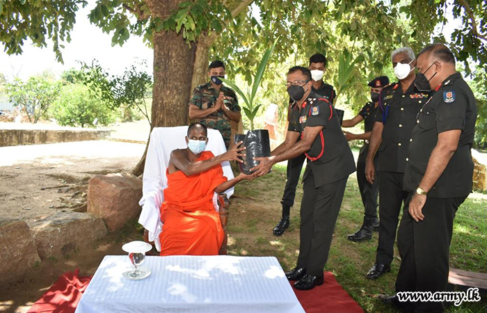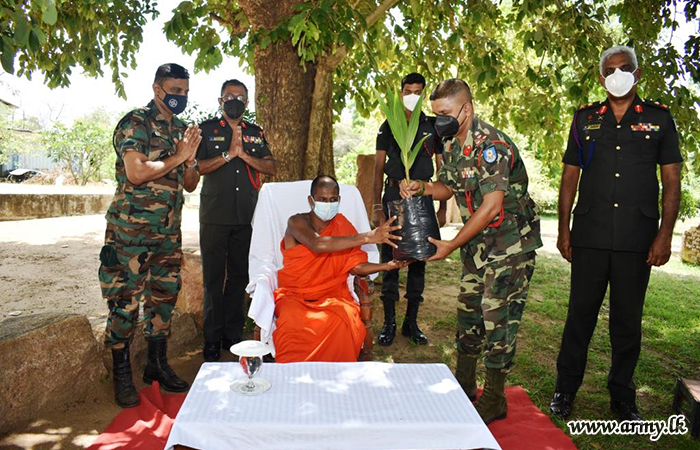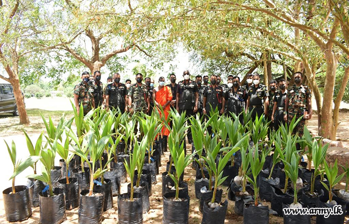 To coincide with the 12th 'Victory Day' (May 18), 100 coconut saplings were accordingly distributed free among cultivating families with the blessings of the Commander Security Forces- MLT Major General Upali Rajapaksha and under the guidance of Major General Manjula Karunarathne, General Officer Commanding, 64 Division. The first few saplings were delivered to the Oddusuddan Temple for distribution among Oddusuddan villagers.