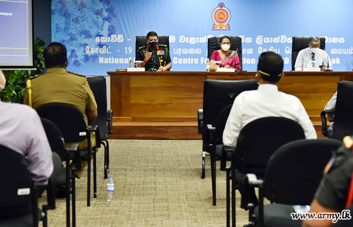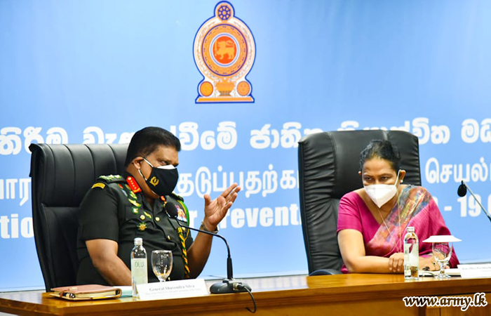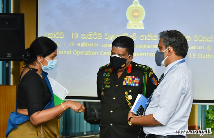 Hon Minister of Health, Mrs Pavithra Wanniarachchi, Dr Asela Gunawardene, Director General of Health Services and General Shavendra Silva jointly presided the session at Rajagiriya NOCPCO.