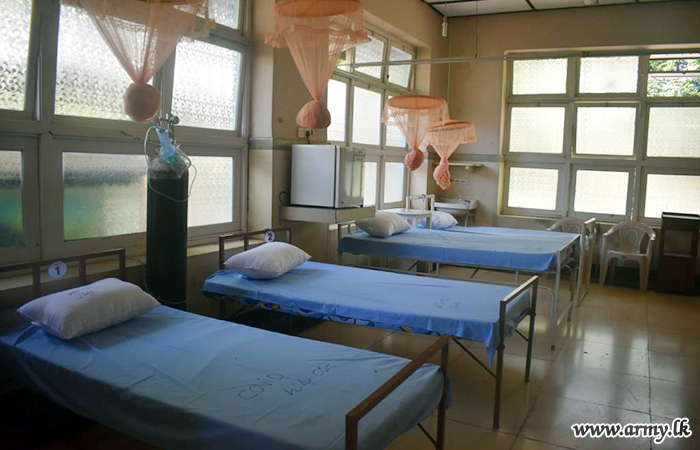 Those ICCs were made a reality with the support of Health officials, District/Divisional Secretaries and workers in hospitals in coordination with the Commander, Security Forces - Central in order to accommodate more virus victims for treatment in the event of any sudden upsurge in numbers. Major General Ranjan Lamahewa, Commander, Security Forces-Central closely supervised those improvisations.