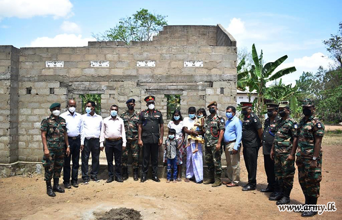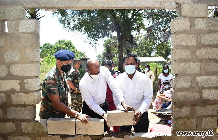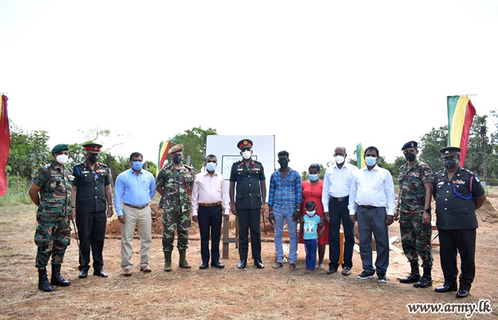A brief inaugural arrangement, organized in Mawalapaddimuruppu, Mankulamon on Tuesday (18) saw the General Officer Commanding 64 Division, Major General Manjula Karunarathne lay the foundation stone for construction of a new house for one Mr V. Vigneshwaran and her family who are undergoing severe hardships.