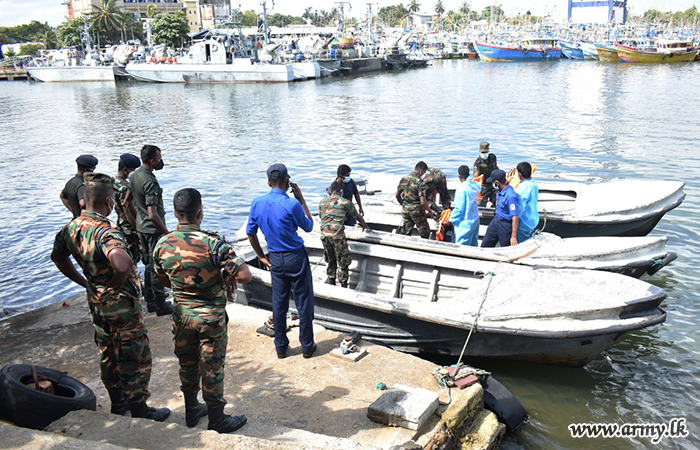 On the guidelines given by Major General Dammi Hewage, General Officer Commanding, 61 Division, an emergency disaster preparation Out Boat Motor (OBM) training programme got underway at Galle Port on during 22 and 23 days in collaboration with the troops in the Naval Command South.