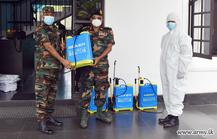Sri Lanka Cancer Society Kandy Branch offering its appreciative support behind COVID-19 preventive work of the 11 Division HQ in the Kandy region on Thursday (20) donated a stock of spray machines, PPE kits and bed sheets to the 11 Division.