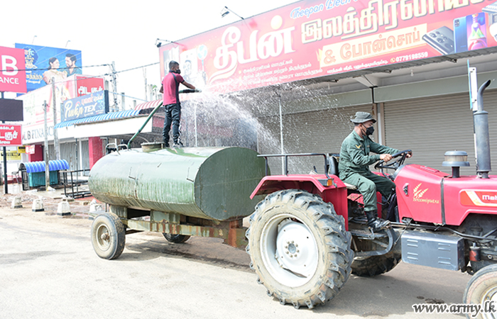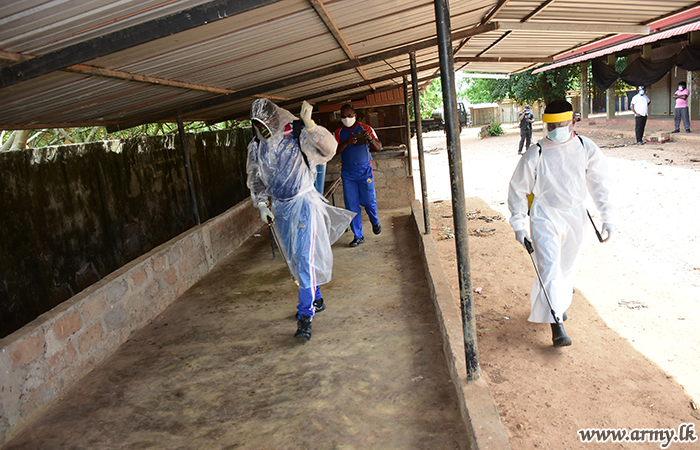 Accordingly, 18 Vijayabahu Infantry Regiment and 6 Sri Lanka National Guard troops of the 682 Brigade sterilized public places around bus stands, welfare centers, state and private banks, markets, public assembly points and three-wheeler parks, etc in Mulliaiveli town area. The project was closely supervised by the General Officer Commanding 68 Division Major General Keerthi Bandara.