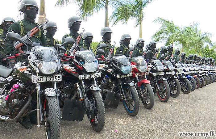 A Quick Reaction Special Rider Team, made up of soldiers of the 53 Division HQ, formed on the instructions of Major General Nishantha Manage, General Officer Commanding, 53 Division is now on patrol in the areas to help the Police to maintain health restrictions.