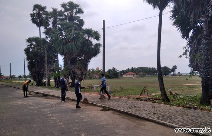 Brigadier Sujeewa Perera, Commander, 591 Brigade took the initiative in this regard. 591 Brigade and 12 SLLI troops participated in the project following health guidelines.