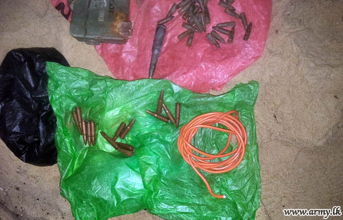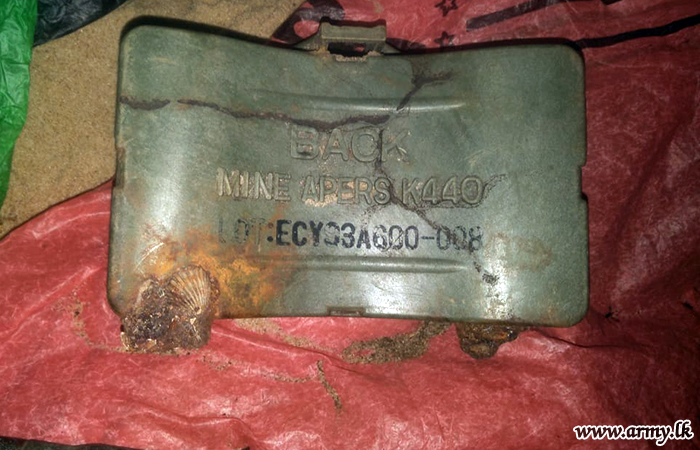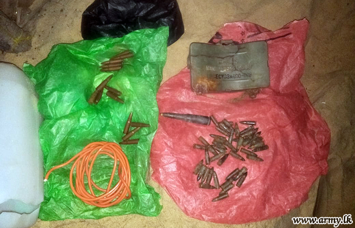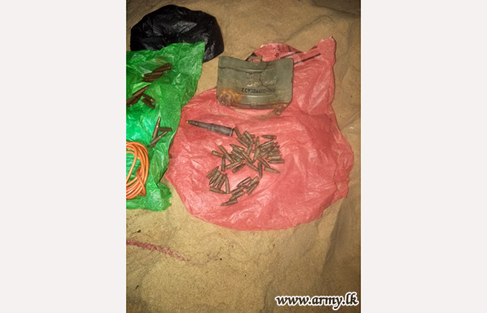 Army troops of the Security Forces in Jaffna on Friday (28) apprehended an ex- LTTE Sea Tiger member with a haul of explosives, inclusive of a powerful claymore bomb of 2 kg in weight, kept buried in his fishing jetty area in Nagar Kovil, Jaffna.