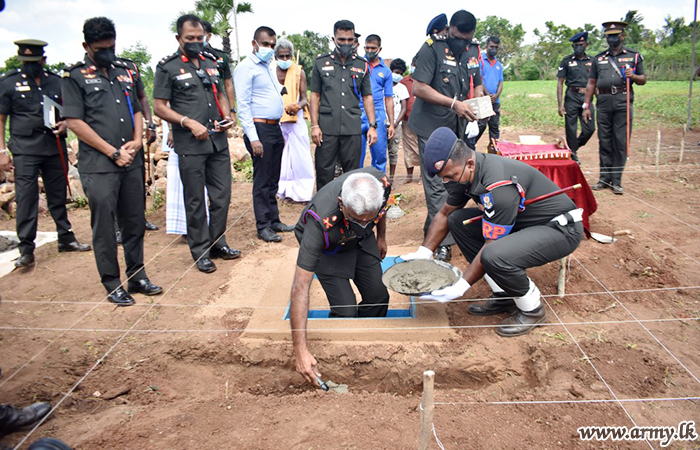 A brief inaugural arrangement, organized in Muthiyankaddukulam, Oddusuddan on Thursday (27) saw the General Officer Commanding of the 64 Division, Major General Manjula Karunarathne laid the foundation stone for construction of a new house for one Mrs R. Rajeswari and her family who are homeless and undergoing severe ecnomic hardships.