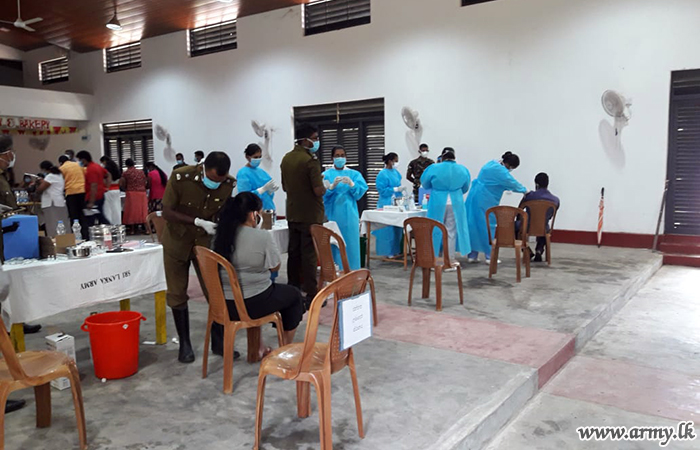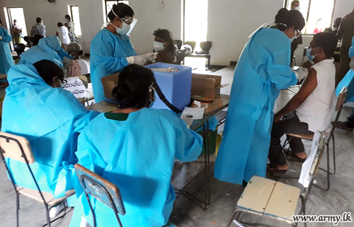 Army troops in close co-operation with Medical Officers of Health (MOHs) and health providers in respective regions throughout Saturday (29) successfully carried out COVID-19 vaccination programmes at government-organized mobile centres at Uyanwatta, Pawarasiri Niveraramaya, Ransegoda Sri Vijayaramaya and Kekanadura Rajamaha Viharaya in Matara District, Atanika Primary School, Elpitya Ananda College and Habarduwa Dharmika Vidyalaya in Galle District as instructed by General Shavendra Silva, Head of the National Operation Centre for Prevention of COVID-19 Outbreak (NOCPCO), Chief of Defence Staff and Commander of the Army.