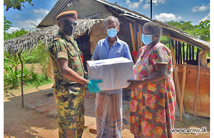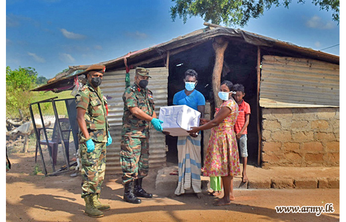 Troops taking their own initiative prepared dry ration packs for low income families living in the general area of Mulankavil and distributed them on Monday (31) as a relief measure since COVID-19 travel restrictions have compelled them to stay indoors.