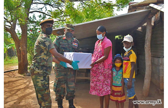 On the guidelines given by Major General Tikiri Dissanayake, General Officer Commanding, 65 Division, the distribution of dry rations was jointly supported by the Commander 652 Brigade and troops of the10 Sri Lanka Light Infantry.