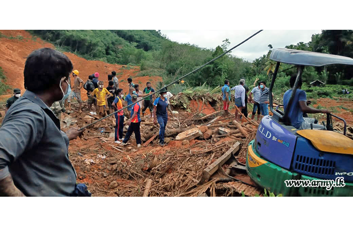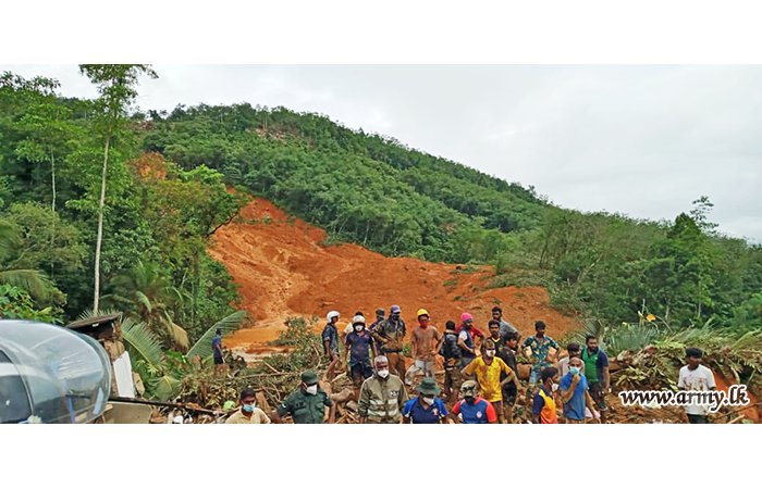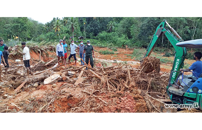 Troops trekked along the affected areas, clearing obstacles on their way amidst torrential rains and rescued a 50-year old woman, trapped in a mound of earth and took her to the closest Kiriella Hospital.
