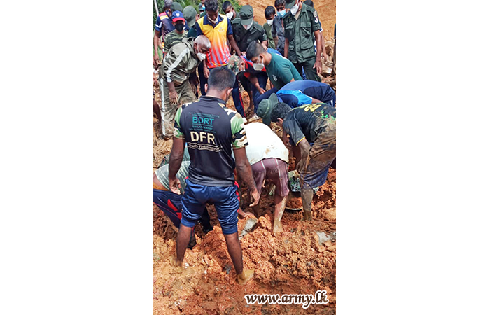 Afterwards, troops continued their search & rescue missions in and around the area, affected by the earthslip and recovered a dead body of a 17-year old young girl, caught in the disaster. During the search, they came across another 60-year old man, buried alive in mounds of earth after a minor earthslip affected the area.