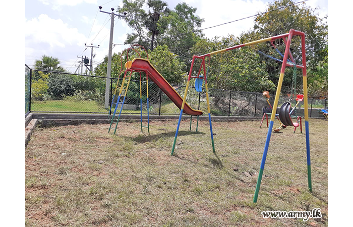 Troops of 12 Sri Lanka Light Infantry (SLLI) under command to the 591 Brigade of the 59 Division under the Security Force HQ - Mullaittivu renovated the children's park near the Saloon Junction in Wattapalai Grama Niladhari Division on Monday (31).