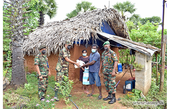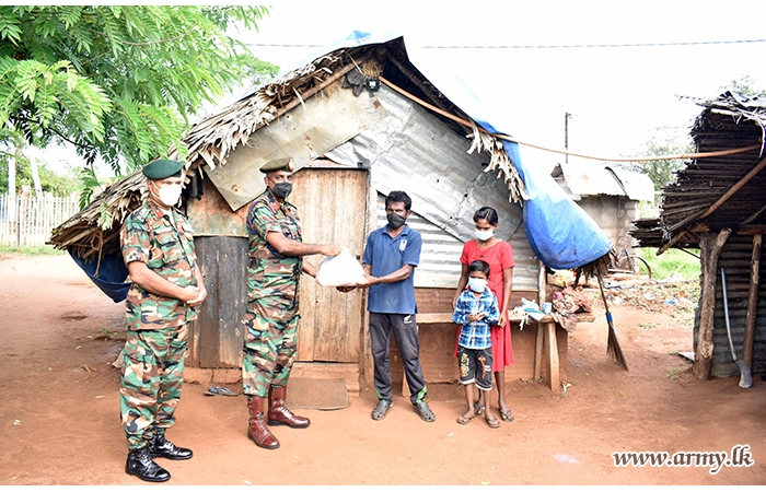 Troops of the 64 Division of the Security Force Headquarters - Mullaittivu (SFHQ-MLT) coordinated the distribution of dry ration packs among needy families in the general area of Oddusudan on Saturday (5).