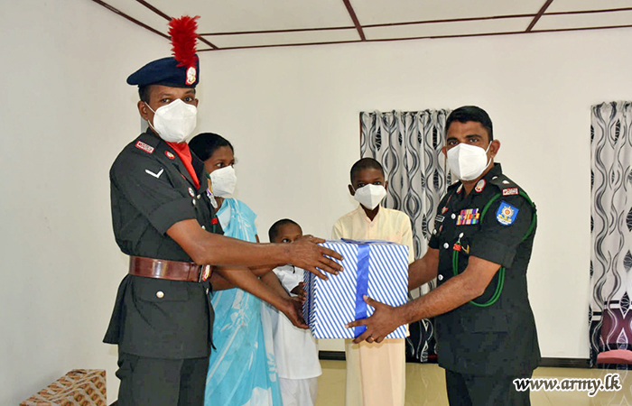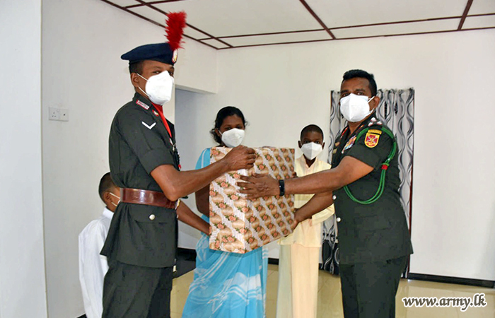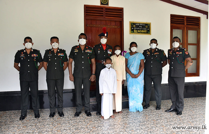 To be in line with the Commander's vision to support the construction of new houses both for soldiers and the homeless in society, a new house, built by 7 Gemunu Watch (GW) troops under the supervision of the GW Regimental Centre in Nagoda, Kalutara was symbolically warmed and handed over to the recipient, a Lance Corporal in 7 GW Regiment.