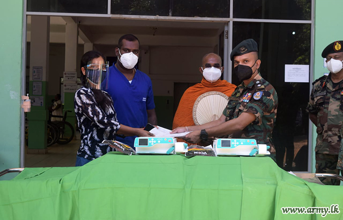 The Shakya Puthra Foundation through coordination of Major General Upali Rajapaksha, Commander, Security Forces - Mullaittivu donated brand new two Digital Infusion Pump Machines for use at Mullaittivu District Hospital on Tuesday (8).