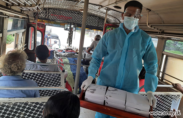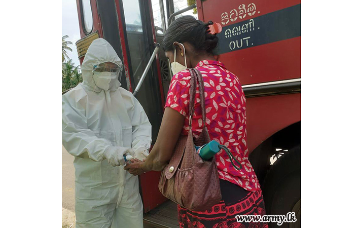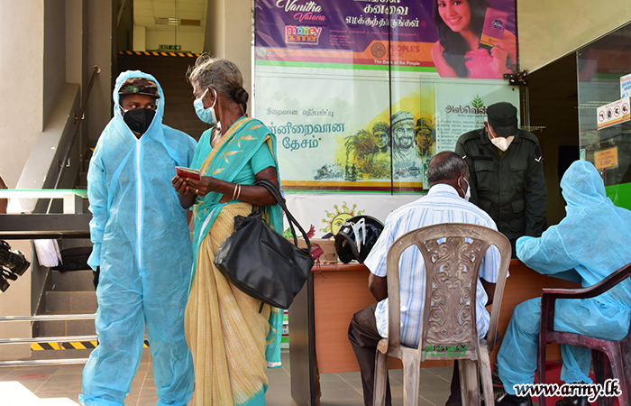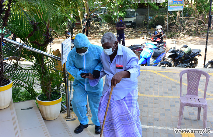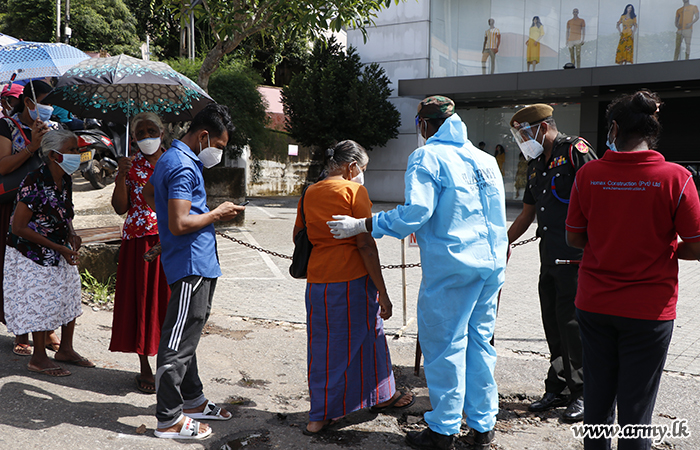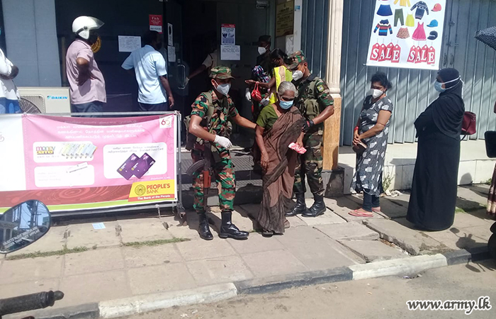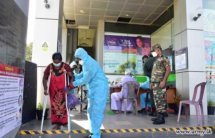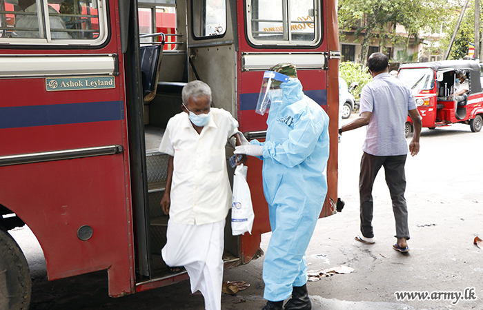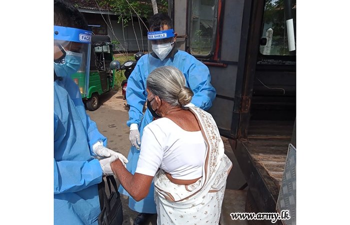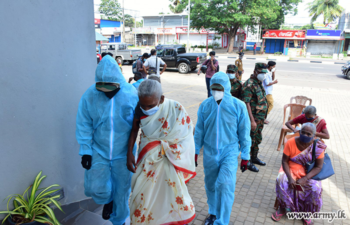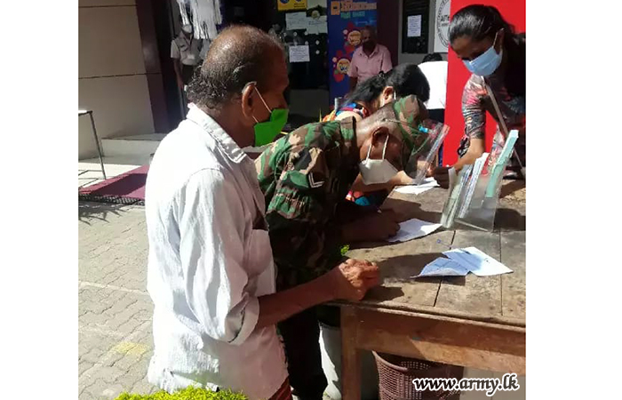 Army troops of all formations across the island through their respective Security Force HQs/Divisions/Brigades provided up and down transport to pensioners who turned up to draw their pensions today (10), following instructions given by General Shavendra Silva, Head, NOCPCO, Chief of Defence Staff and Commander of the Army. This was the second such practice being implemented after full travel restrictions came into force.