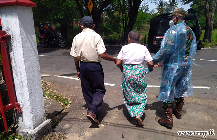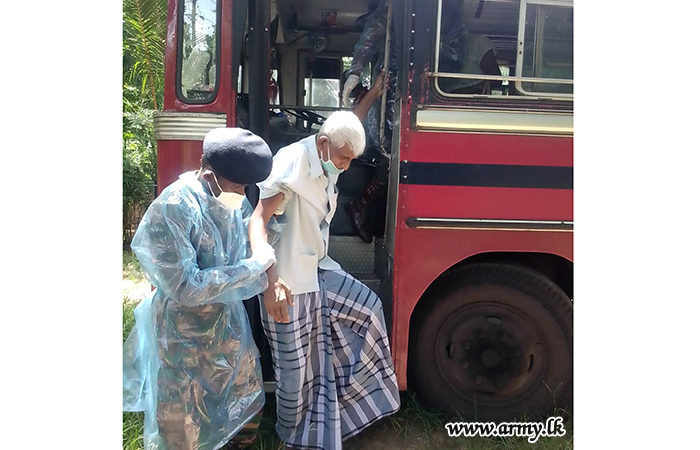 The project, suggested by HE the President, attaching importance to the well-being of those senior citizens, numbering over five lakhs was implemented with the help of Army-owned buses and SLTB buses in respective areas. Troops with the support of information given by respective Grama Niladarin (GN) (State Officials) took the buses to specified collecting points and transported them to relevant banks and post offices.