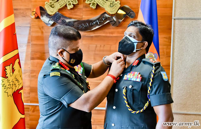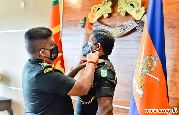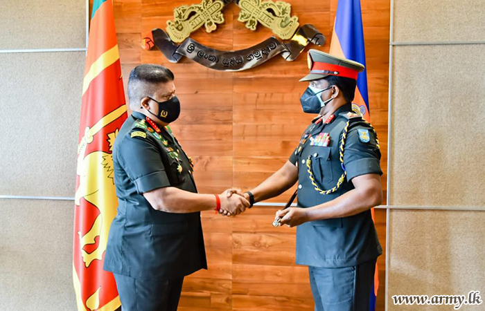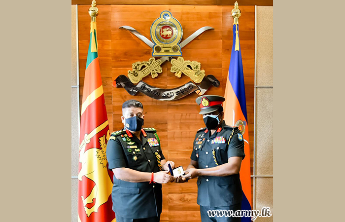 Awarding the batton that signifies the authority and a replica of a sword as a memento, General Shavendra Silva towards the end of the interaction, extended his best wishes to him on his new rank, letters of appointment as Commander FMA-East and the Colonel Commandant in the SLASC. The recipient also thanked the Commander of the Army for the latter's appreciation and his kind comments.