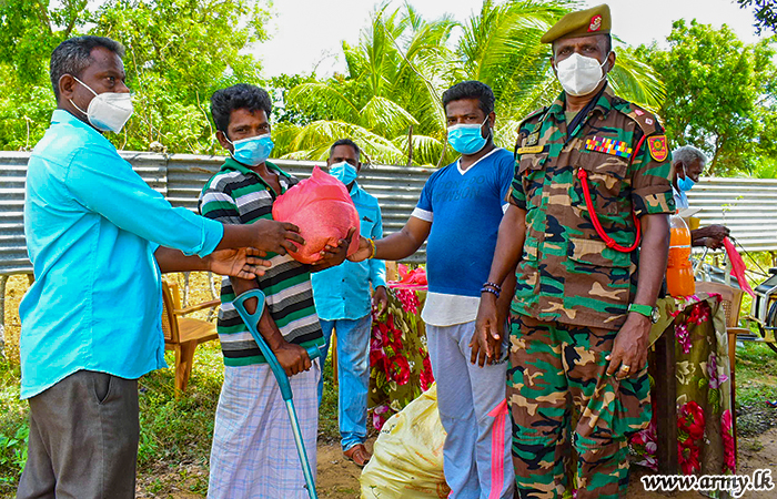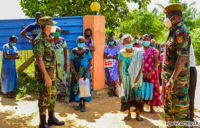 As per guidelines given by Major General Harendra Ranasinghe, Commander Security Forces- Kilinochchi, the distribution programme was carried out under the guidance of the General Officer Commanding, 57 Division Major General Priyantha Jayawardane after identifying the families who were undergoing hardships due to COVID-19 spread in the area.