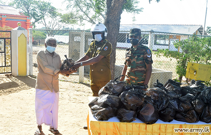 Troops of the 591 Brigade under command to the 59 Division of the Security Forces - Mullaittivu distributed free vegetable packs among needy families in Nandikadal area on Tuesday (15).