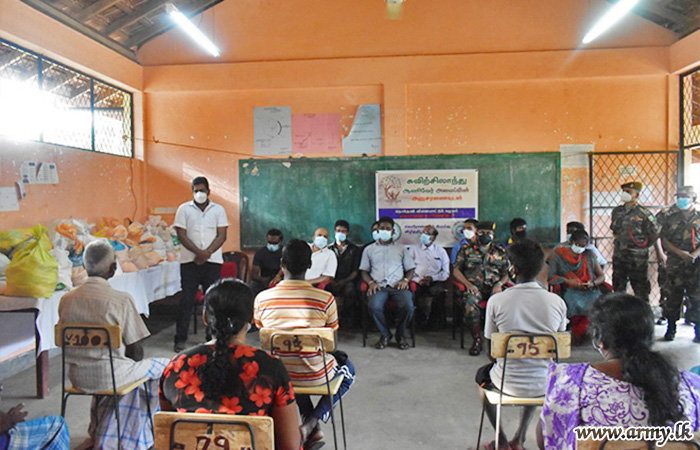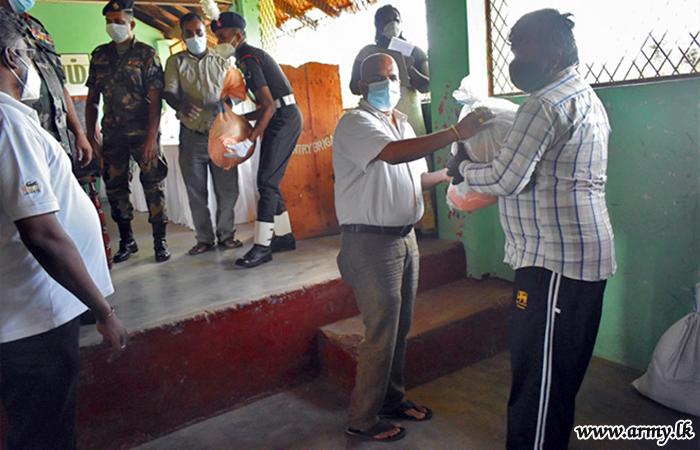 A project to distribute dry rations among the needy families who are living in the general area of Thunukkai and Naddankandal got underway on 13 June 2021 under the guidance and supervision of Major General Tikiri Dissanayake, General Officer, Commanding of 65 Division, considering manifold hardships of the general public.