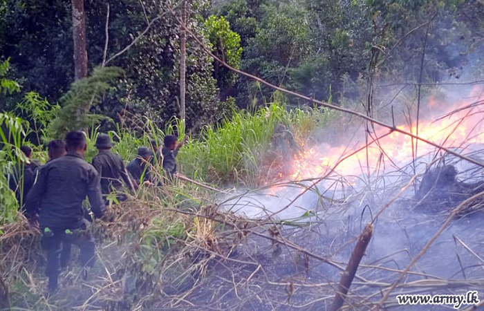 Troops swiftly reached out the affected area in Abadhandegama Mountain range and brought it under control within a few hours before the whole forest range caught fire.