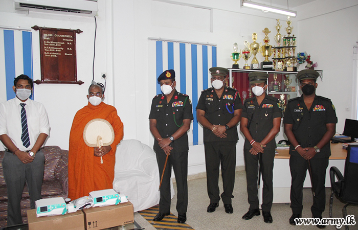 The Incumbent at Sapumalgaskanda Raja Maha Viharaya and Founder Sri Shakyaputhra Foundation, Ven Shantha Bodhi Thero provided two syringe pumps worth of Rs 300,000.00 to treat COVID patients in the Wanni region on Wednesday (16).