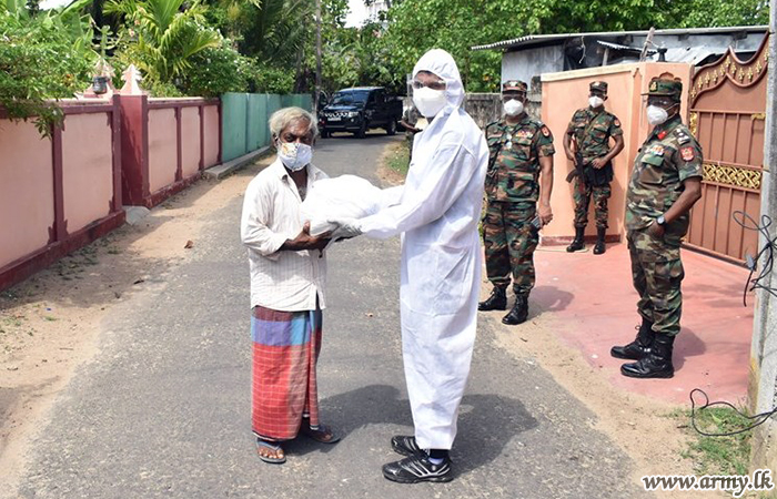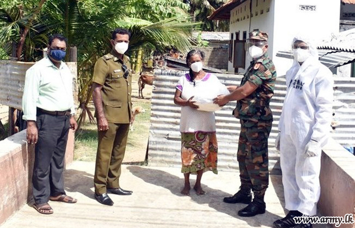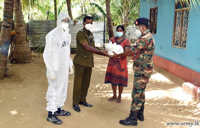 Following a generous sponsorship provided by an anonymous donor, 55 Division troops of the Security Force HQ - Jaffna coordinated and distributed more than 175 dry ration packs among needy families in GN divisions of Katkowalam, Thumpalai, Puloly North, Vallipuram, Thunnalai villages in Point Pedro, Jaffna on Wednesday (16).