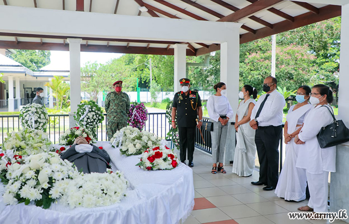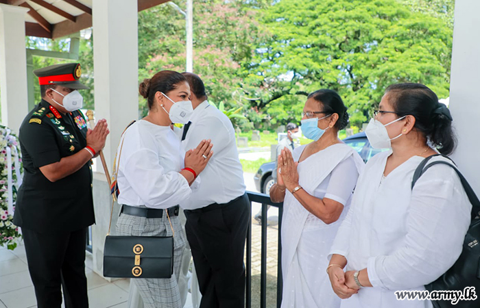 General Shavendra Silva, Chief of Defence Staff and Commander of the Army who has a high regard and respect for the late military veteran along with Mrs Sujeewa Nelson President, Army Seva Vanitha Unit paid his last respect condoling with family members.