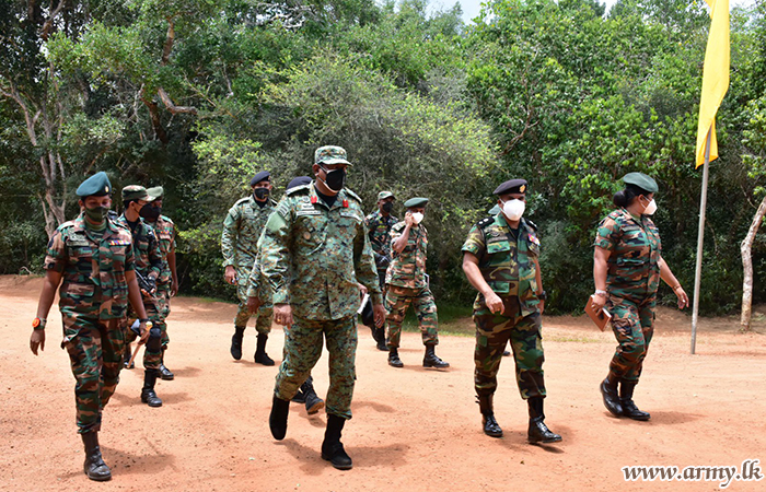 The Commander, Security Forces Kilinochchi, Major General Harendra Ranasinghe recently made a formal field visit to the 4 (V) Sri Lanka Army Women’s Corps camp in Kilinochchi.