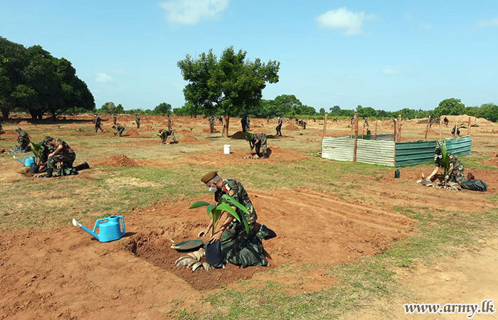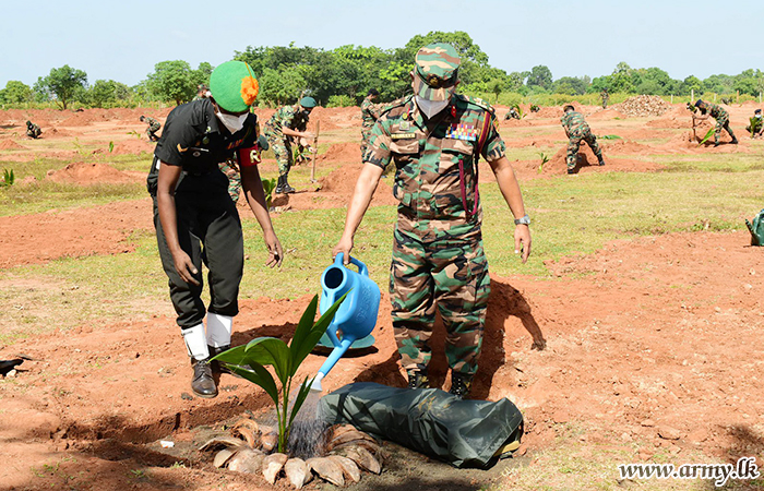 The Security Force Headquarters-Kilinochchi (SFHQ-KLN) premises were to go green planting 350 coconut seedlings, covering a large portion of its unused land extent inside the camp compound.