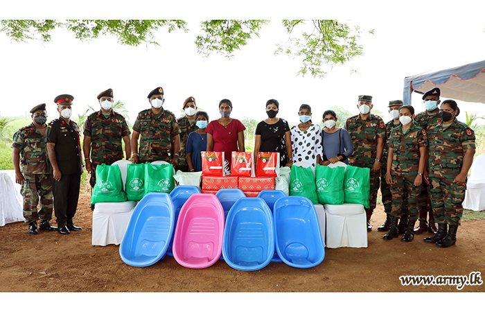 Needy pregnant women who are employed in farms, managed by the Security Force Headquarters - Jaffna (SFHQ-J) were gifted with packets of dry rations and nutrients on Tuesday (22) on a suggestion, made by the Commander, Security Forces-Jaffna.