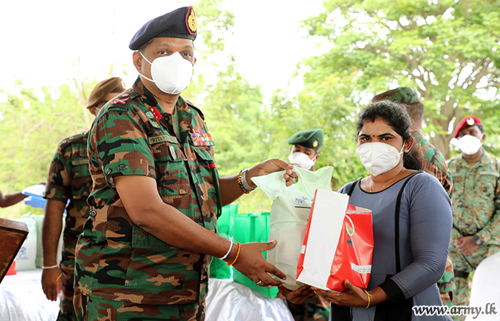 After inviting those women to the SFHQ - Jaffna, Major General Priyantha Perera, Commander, Security Forces - Jaffna as the Chief Guest for the occasion distributed those relief packets. Many of those women from far remote corners in the peninsula received those packs, consisted of Rice, Dhal, Sugar, Milk Powder, Tea, Dry Fish, Packets of Biscuits, Soya Meat, etc