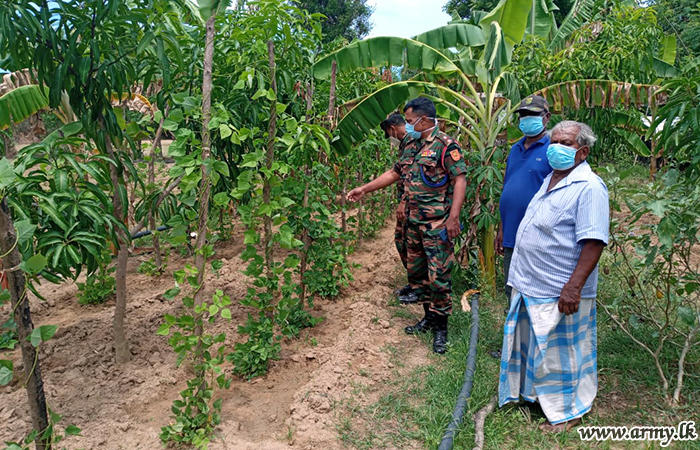 To fulfill aforesaid vital needs of the general public, Brigades under the SFHQ- Kilinochchi launched projects to encourage income-generating practices in fields such as agriculture, fishery, bee-keeping, etc. Troops of the 7 Sri Lanka Light Infantry distributed 30 turkey berry plants (Thibbotu) for selected 15 low-income families and 800 winged bean plants for 30 needy families while troops of 9 Vijayabahu Infantry Regiment distributed 750 Turkey Berry plants (30 plants for each family) for selected 25 low-income families in Karachchi DS area and Oddusudan DS area.