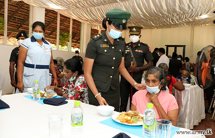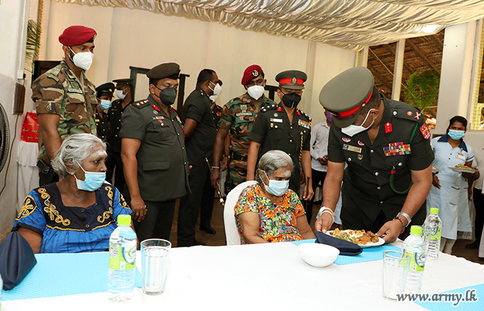 Officers and Other Ranks of the SFHQ (J) on account of the 25th Silver Jubilee of the SFHQ-J offered meals to the inmates at Mcleod Elders' Home at Inuvil, Jaffna on 20 June 2021 on the directions of Major General Priyantha Perera, Commander Security Forces- Jaffna.