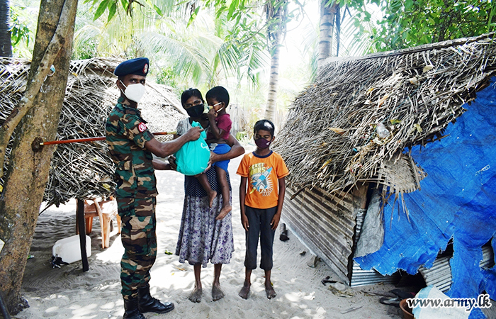 The project saw its fruition under the guidance of the Commander, 231 Brigade, Brigadier Vijitha Hettiarachchi, supervised by the Commanding Officer of 4 Gemunu Watch, Lieutenant Colonel L Jayasinghe. Those packs, sponsored by donors in the area, were distributed by GW troops after selecting most deserving families in consultation with respective Grama Seva officials since travel restrictions have deprived them of their sources of income.
