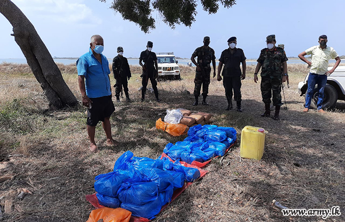 Following a tip-off received by the 66 Division’s Intelligence & Security Groups in combination with 20 Sri Lanka Light Infantry Regiment troops recovered a stock 40 packets of Kerala cannabis, weighing more than 80 kg from the general area of Seethakudirruppu, Nallur in Kilinochchi on Friday (25).