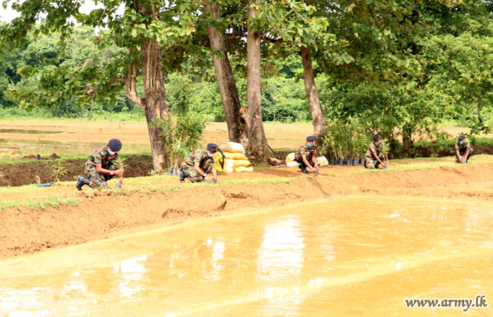 To be in line with the ongoing 'Thuru Mithuru Nawa Ratak' green drive, conceptualized by General Shavendra Silva, Chief of Defence Staff and Commander of the Army, Lieutenant Colonel C.S Demuni, Commanding Officer 1 Sri Lanka Army General Service Corps recently launched a project to plant 'Mee' saplings in the Panaluwa farm premises.