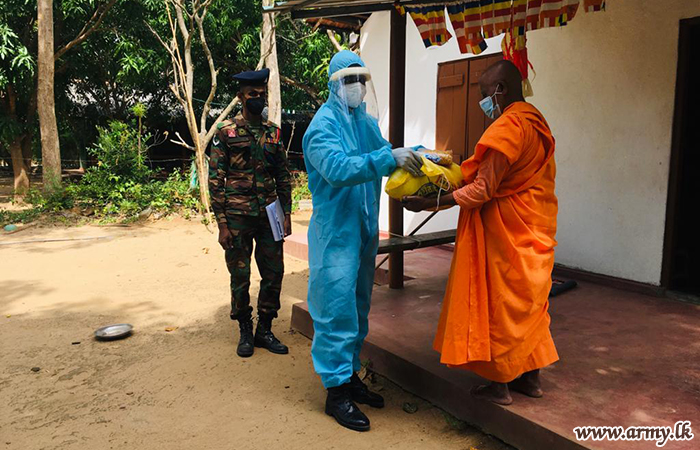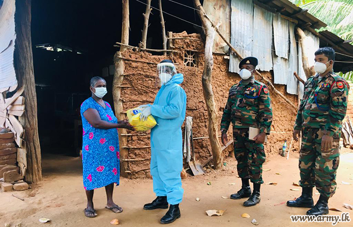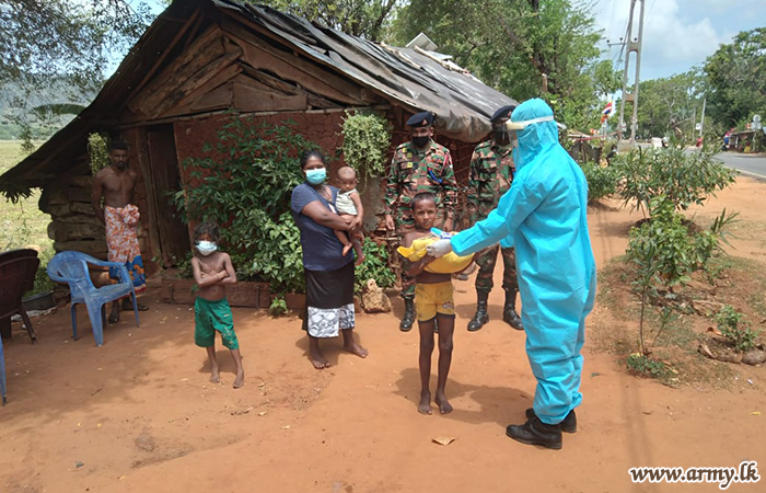 Troops belonging to 3 Sri Lanka National Guard (SLNG) with sponsorship provided by the Basnayake Nilame at Ruhunu Kataragama Maha Devalaya coordinated and undertook the responsibility of distributing some 5000 packs of dry rations among needy families in Kataragama after information about them was conveyed to the troops by respective Grama Niladari officials.