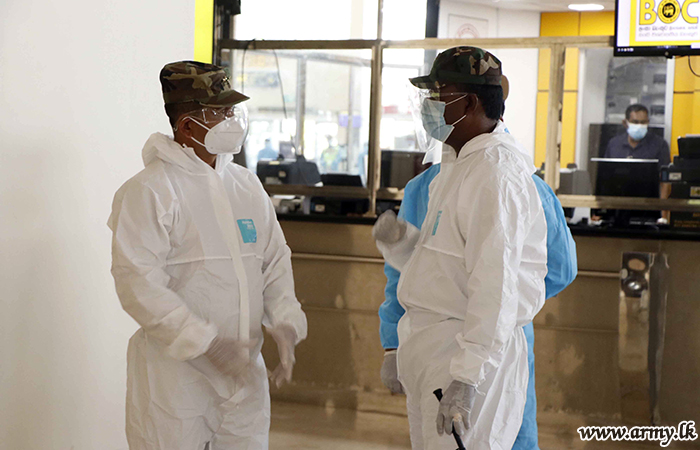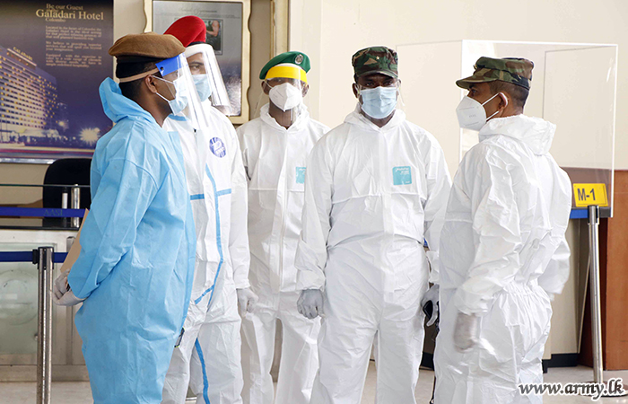 He met Officers and Other Ranks, engaged in the project and shared thoughts on the operational aspect and instructed accordingly before he left for the Bandaranayaka International Airport where troops are dedicatedly engaged in onward arrangements of all those expatriates/foreigners arriving here for quarantine procedures.