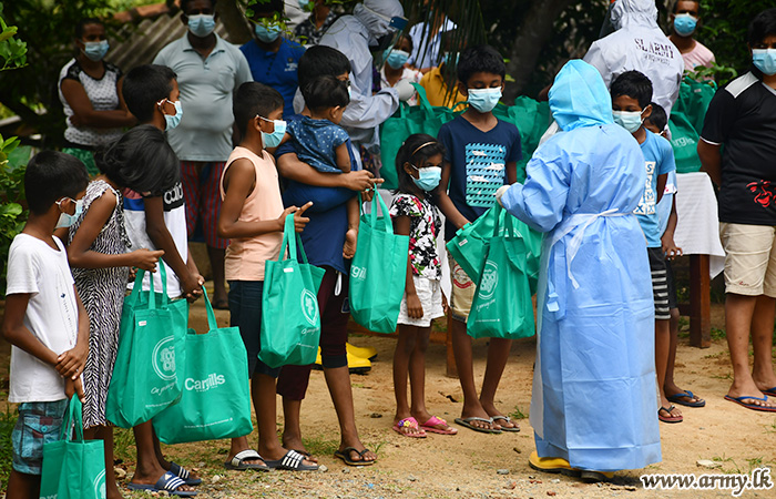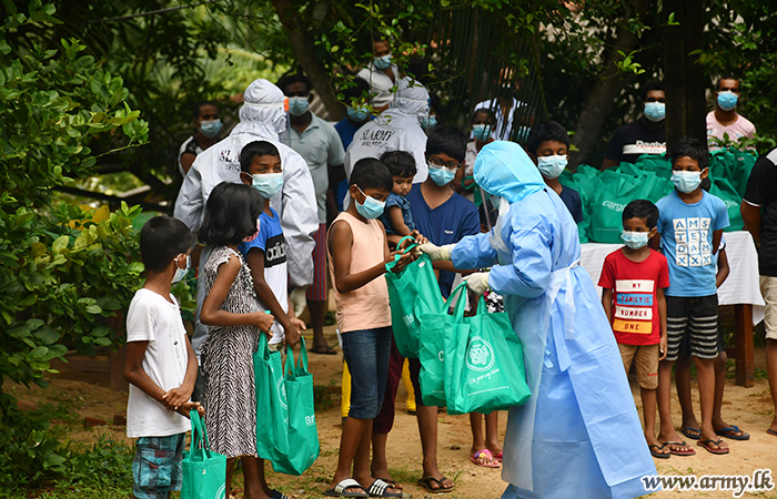 Major General Dammi Hewage, General Officer Commanding, 61 Division coordinated the donation and Brigadier Upul Kodithuwakku, Commander 613 Brigade personally supervised the troops during the distribution.