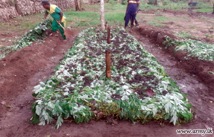 The Security Force HQ - Kilinochchi (SFHQ-KLN) implementing the government’s policy of encouraging organic fertilizer production process in the region has started the project inside camps of the 66 Division, 661 Brigade HQ, 662 Brigade HQ, 663 Brigade HQ and under command Infantry battalions of 24 Vijayabahu Infantry Regiment (VIR), 20 Sri Lanka Light Infantry (SLLI), 20 VIR, 11 (V) Gajaba Regiment, 5(V) Mechanized Infantry Regiment (MIR) and 2 Sri Lanka National Guard (SLNG).