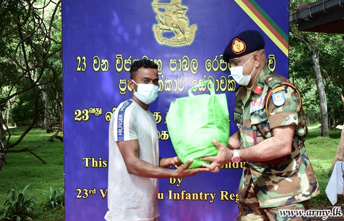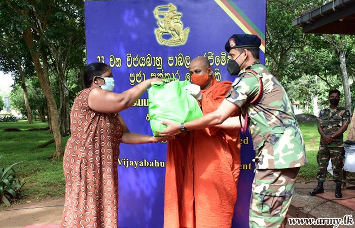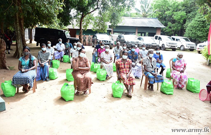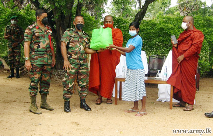 Patronage and Sponsorship of South-based Buddhist monks enabled 64 Division troops of the Security Force HQ - Mullaittivu to distribute 250 dry ration packs among the most-affected poor people living in the Oddusudan Divisional Secretariat area on Monday (28) on an initiative taken by Major General Manjula Karunarathne, General Officer Commanding, 64 Division.