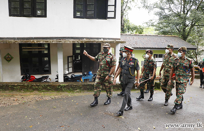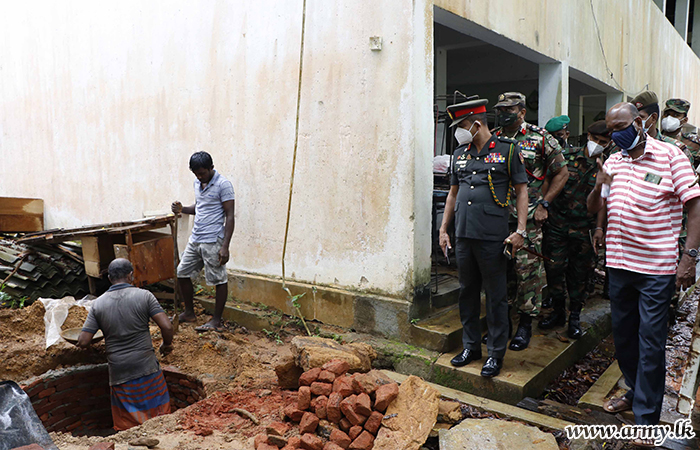 Similarly, he inspected the construction progress of the Kamburupitiya hospital's new maternity ward and the QC at Nilwala Teachers' Training school at Matara. He also discussed project details with several officers and respective Brigade Commanders.