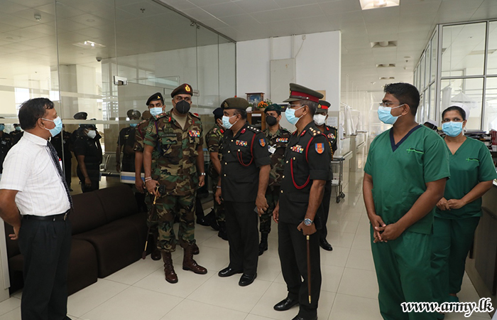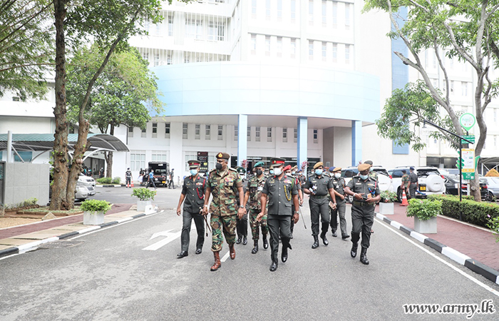 During this visit, the Adjutant General assessed the operational aspect in the Colombo Army Hospital and visited the construction site, together with the Director General Army Health Services - Brigadier Chrishantha Fernando, Director - Army Medical Services, Brigadier K.P.N Pathirana, Director Management and Maintenance of Army Hospital Colombo - Brigadier Jude Perera and a few senior officers.