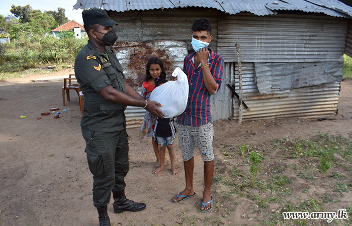 Under the guidance of the Commander 642 Brigade - Brigadier Rasika Perea, troops of 23 Vjayabahu Infantry Regiment and 17 (V) Gajaba Regiment launched the distribution programme in close connection with respective Grama Seva officials.